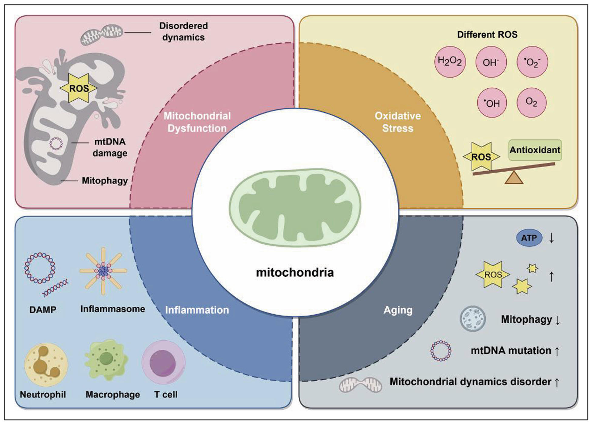 Figure 1. Mitochondrial dysfunction's crucial role in oxidative stress, inflammation, and aging.